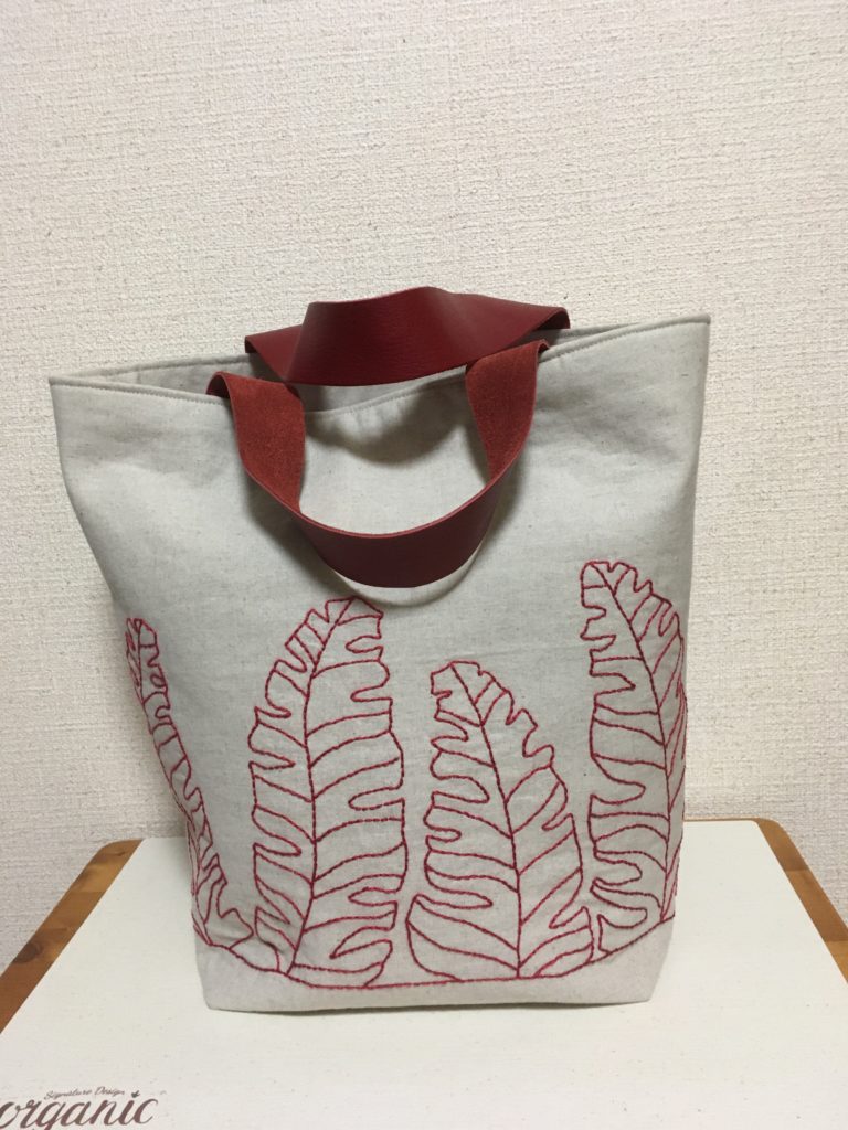 リーフステッチがポイントです。持ち手はソフトレザーです。