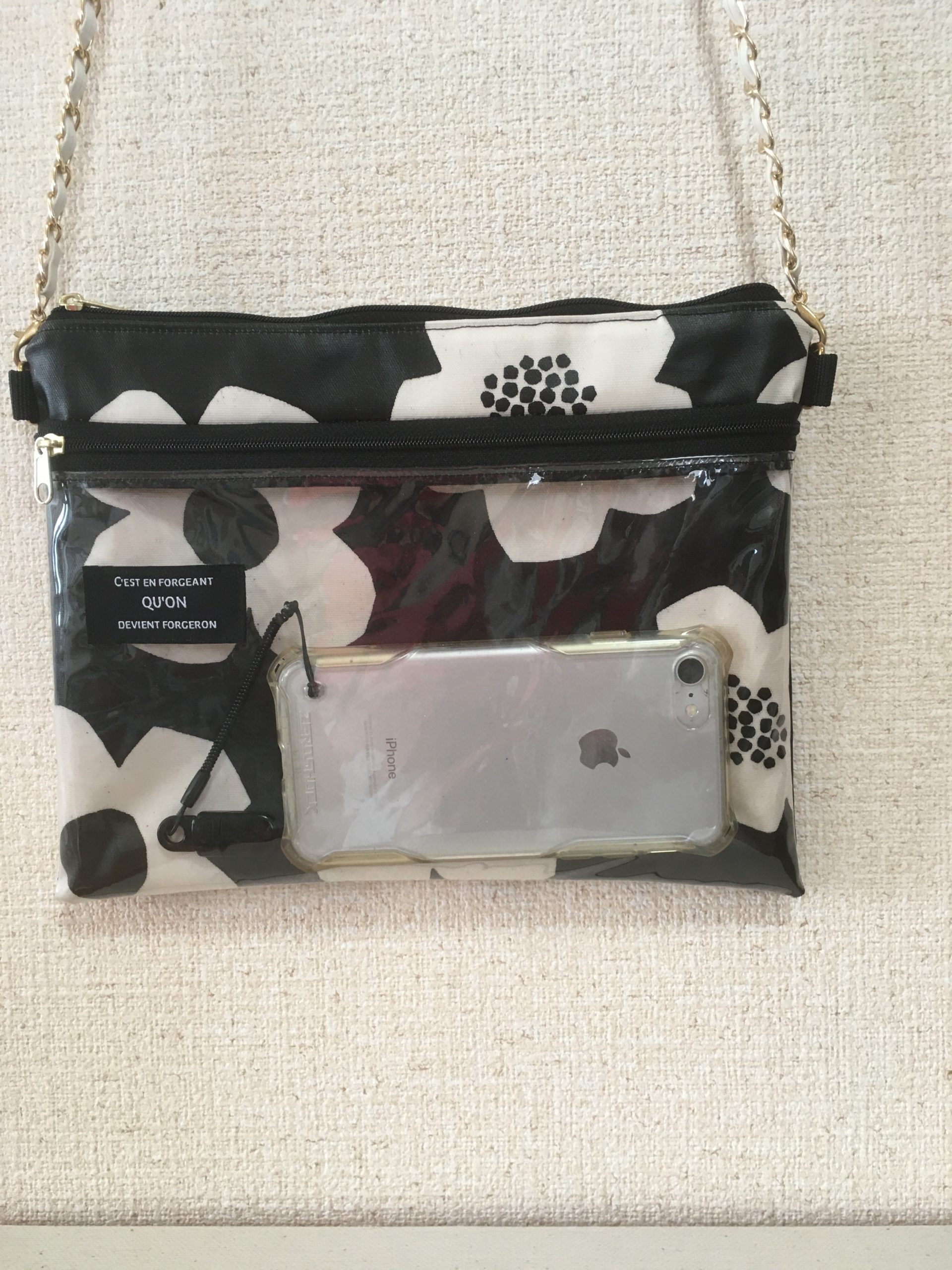 外ポケットは透明なビニールで中見えするのも可愛いです