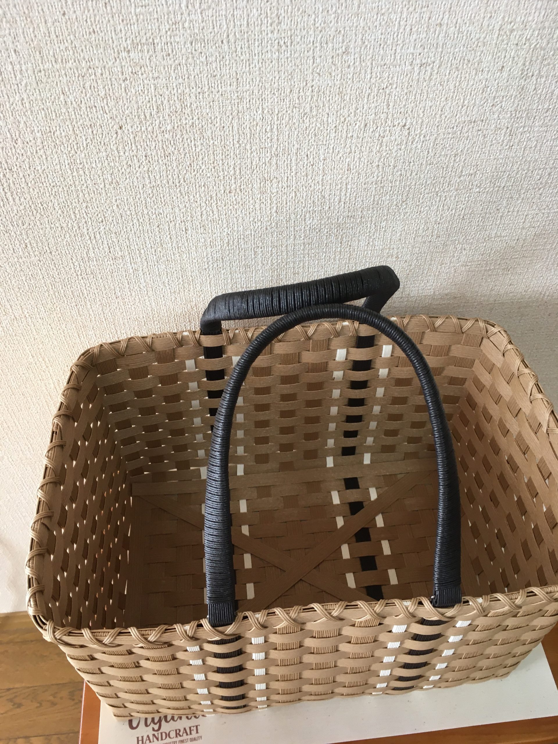 持ち手付きの大きなバッグは持ち運びするのも便利で、持ち手を倒してインテリアボックスにするのもおしゃれです。