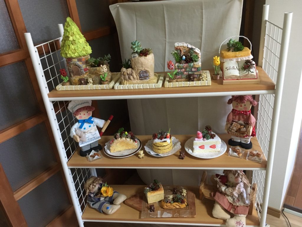 多肉植物の鉢の展示