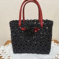 花車編みしたバックです。リボンは付け外し自由です。 サイズ 縦14cm 横23cm 幅20cm 販売価格 4,000円 お買上げ済み