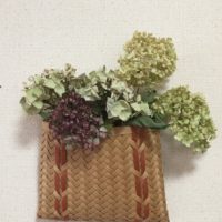あじろ編みのかごです。グリーンやポストカードが飾れます。 横21×縦18 ¥ 1,700