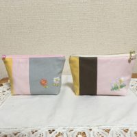 バッグ 横28×縦20×幅10 持ち手 径13㎝ ¥1,600 ポーチ 横20×縦11×幅5 ¥ 500 がま口 7.5㎝口金 ¥ 500