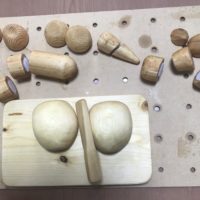 子どもの遊び場ができました。木のおもちゃが色々あります。