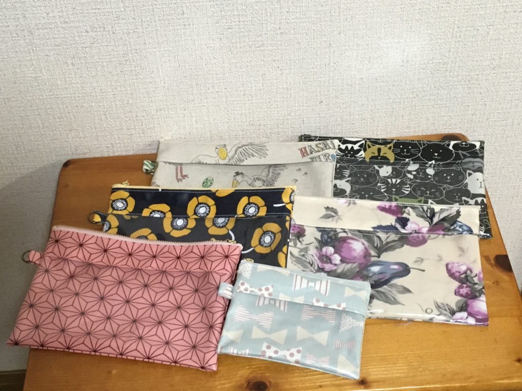 ラミネート生地のポーチ