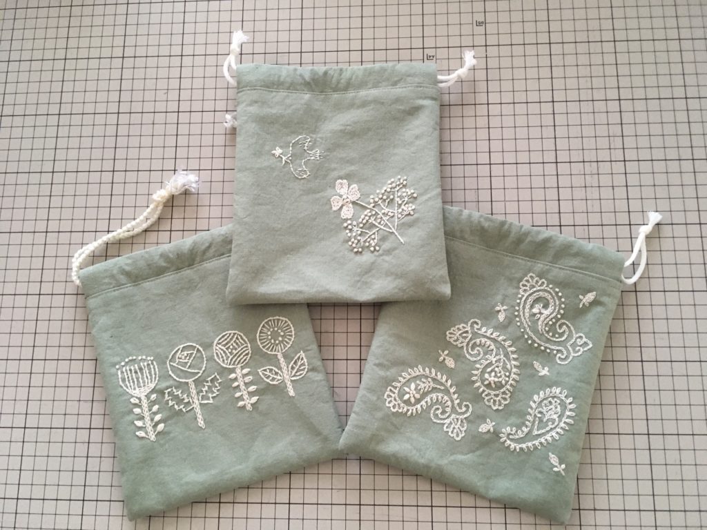 刺繍の巾着袋
